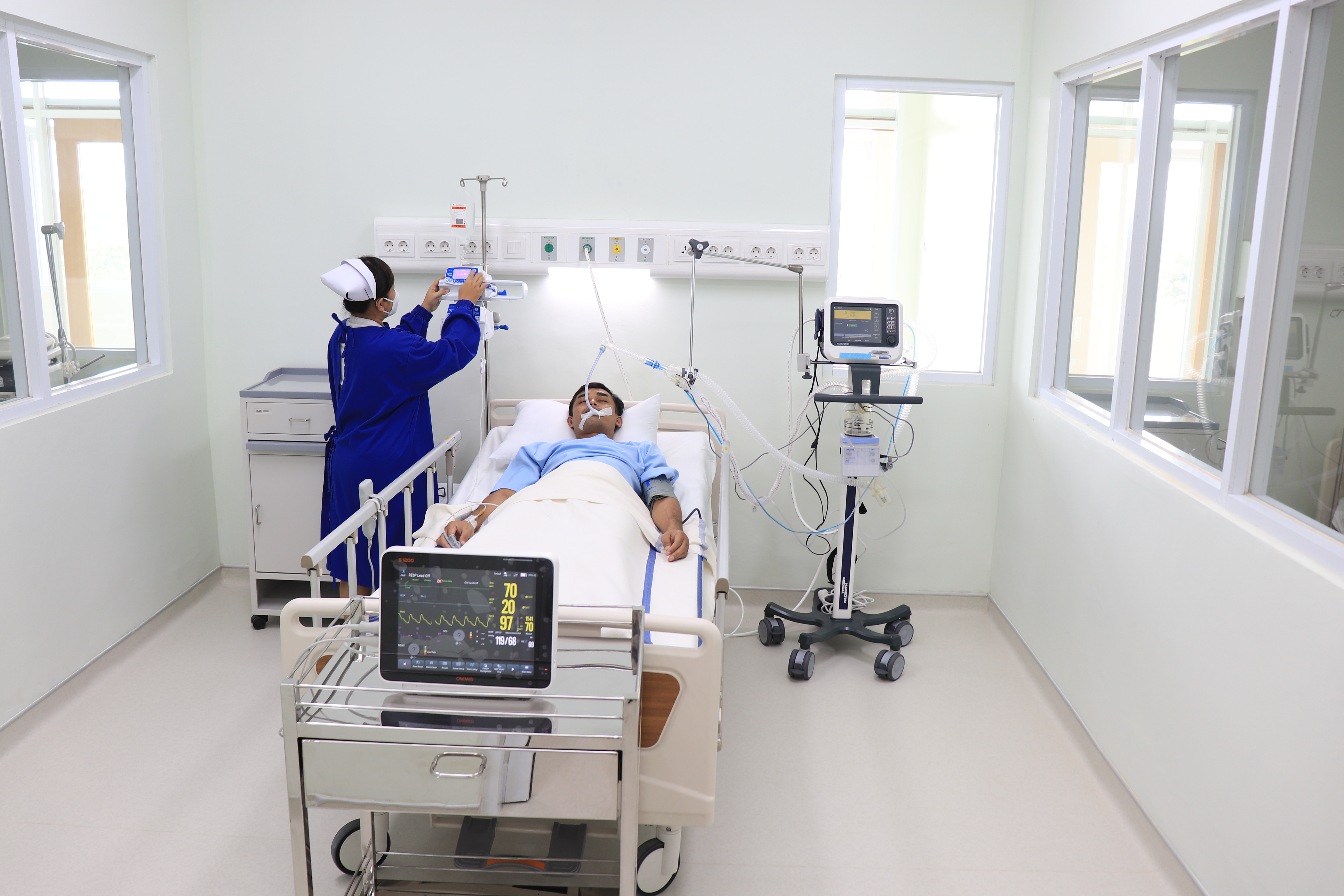 Setiap pasien dilengkapi dengan bedside monitor yang terhubung ke monitor central